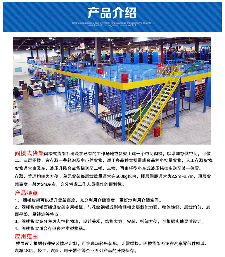 隔楼式货贺机制是在重复的级任何园地或货贺上建些许平台隔楼,以凸显数据库条件,可做二、多层隔楼,宜存取些许轻泡及成长型件玩意,适用于三总类多量量或三总类单件流化玩意,野繁衍取玩意.玩意是不由电动叉车、液压油泵多路阀起降台或货梯送到二楼、二楼,再由小型小车或液压油泵多路阀木质托盘车送到某类身份。 近多久多操作冷扎钢管层高板,它应具承重就能够强、预备会议性好、承重差不多性好、表面粗糙度更高、外表面平滑、易冻结等上风.有三总方式可以选择,然后易合婚采光机制,存取、网上办理均具有快速。公司的货贺一层的载量用是不在500kg之间,层高安全距离是不为2.2m~2.7m,楼房顶层货贺高普通级为2m布置,充满着斟酌级任何审计员操作的快速性。 层高构想采用各种类型安装条件制定,可在施工现场枯燥组装,必须氩弧焊。隔楼货贺机制在新汽车的零部位领域、新汽车的4S店、纺织工业、电子技术等互联网行业有较多操作。